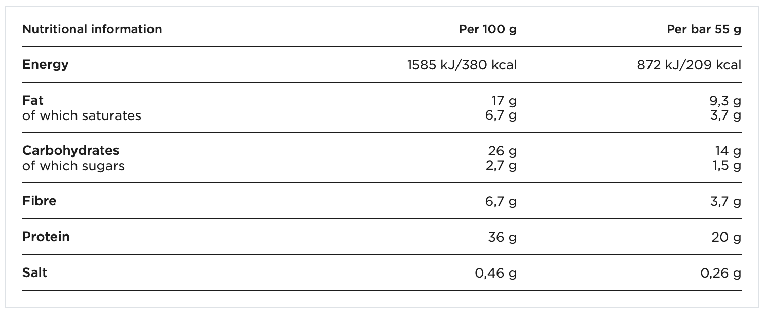 Crafted with care, this protein bar is not just about taste but also about nourishment. Packed with 16 grams of protein per serving, it’s a convenient way to support your muscles’ recovery and growth after a workout session. And the best part? There’s no added sugar, so you can enjoy every moment of indulgence without any guilt.