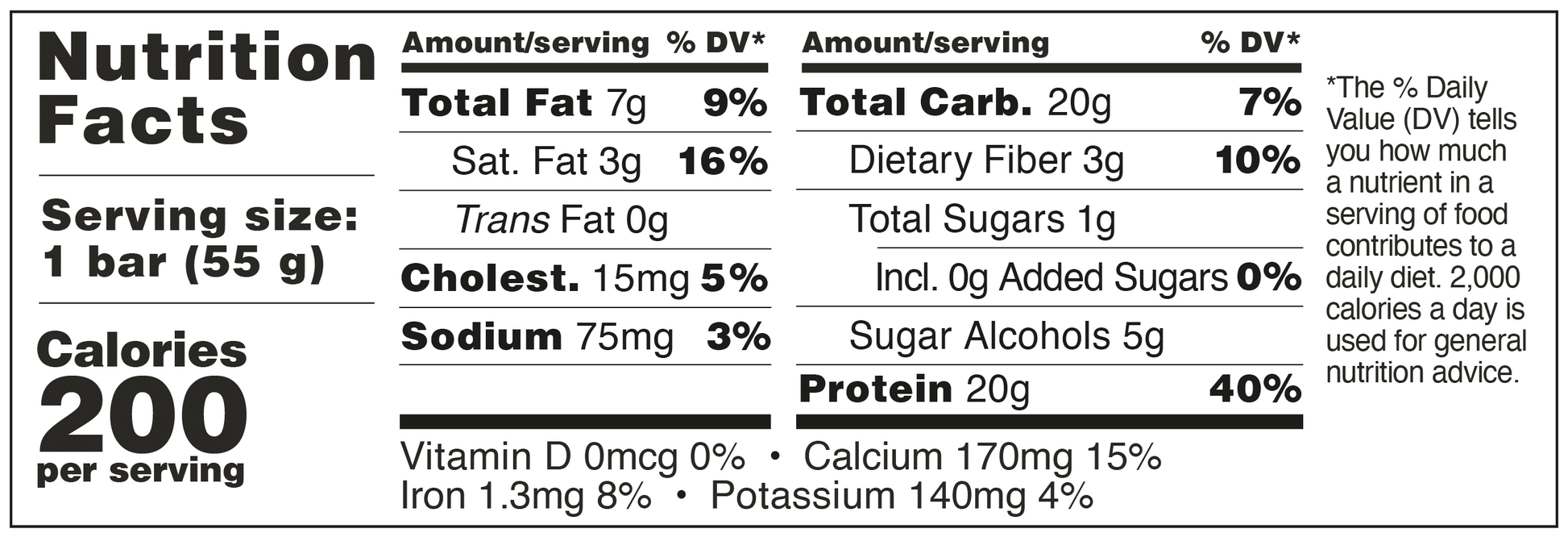 Cookies and Cream is the classic flavor is inspired by the most loved American cookies, this bar is sure to satisfy any crazy cookie cravings. The cherry on top; Cookies and Cream has 20 grams of protein and no added sugar*. This protein bar is your perfect snack!