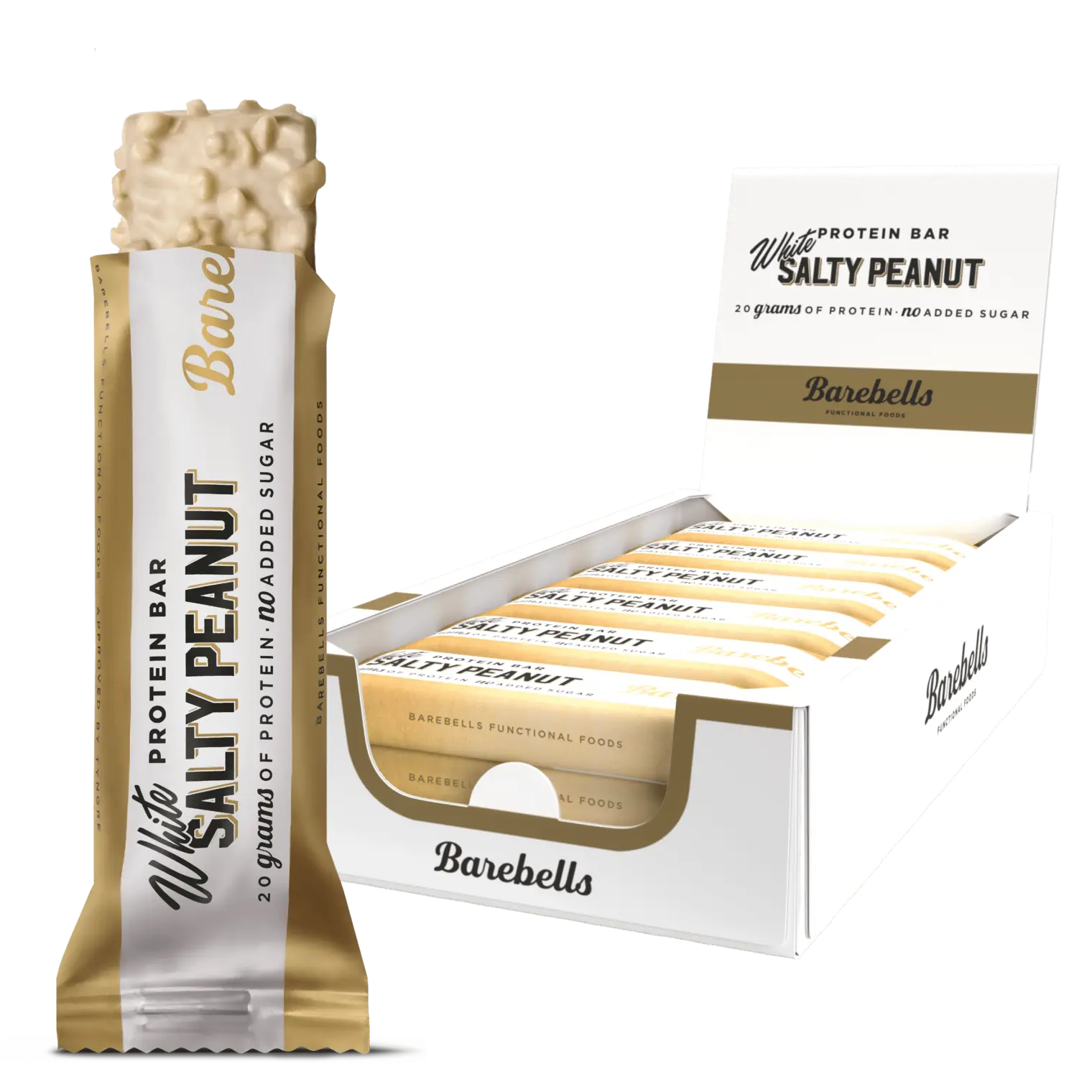 Barebells Salty Peanut was one of the first bars on the market and quickly became a great success due to its insanely good taste. Now, this favorite has been transformed into another irresistible bar: Barebells White Salty Peanut, where salty peanuts dipped in angelic caramel sauce meet white protein mass and a blanket of white creamy chocolate. Like other protein bars from Barebell’s original series, White Salty Peanut contains 20 grams of protein and is completely without added sugar.