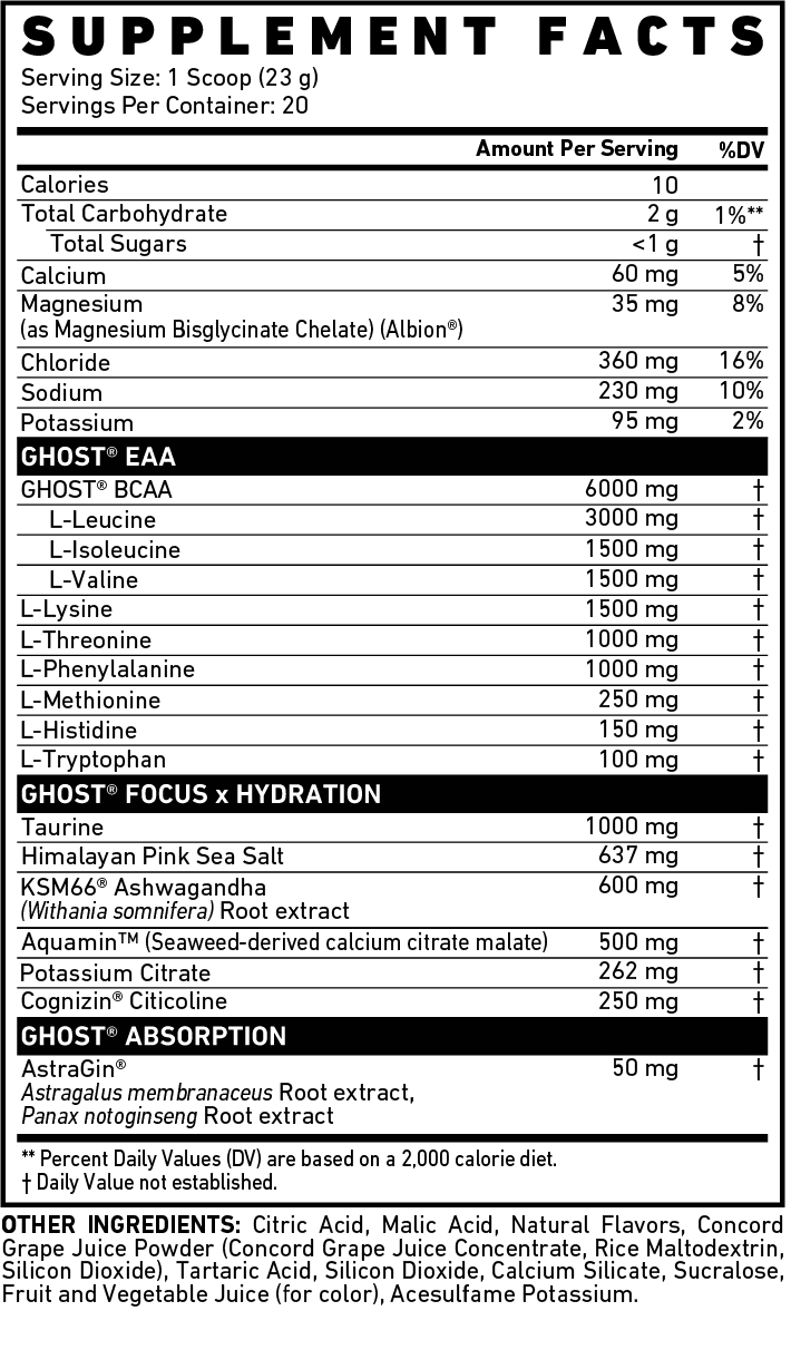 Mix each scoop (serving) of GHOST® INTRA with 14-16 oz of water or beverage of choice. Vary amount of liquid to taste. Consume during or after exercise on training days or throughout the day as desired.