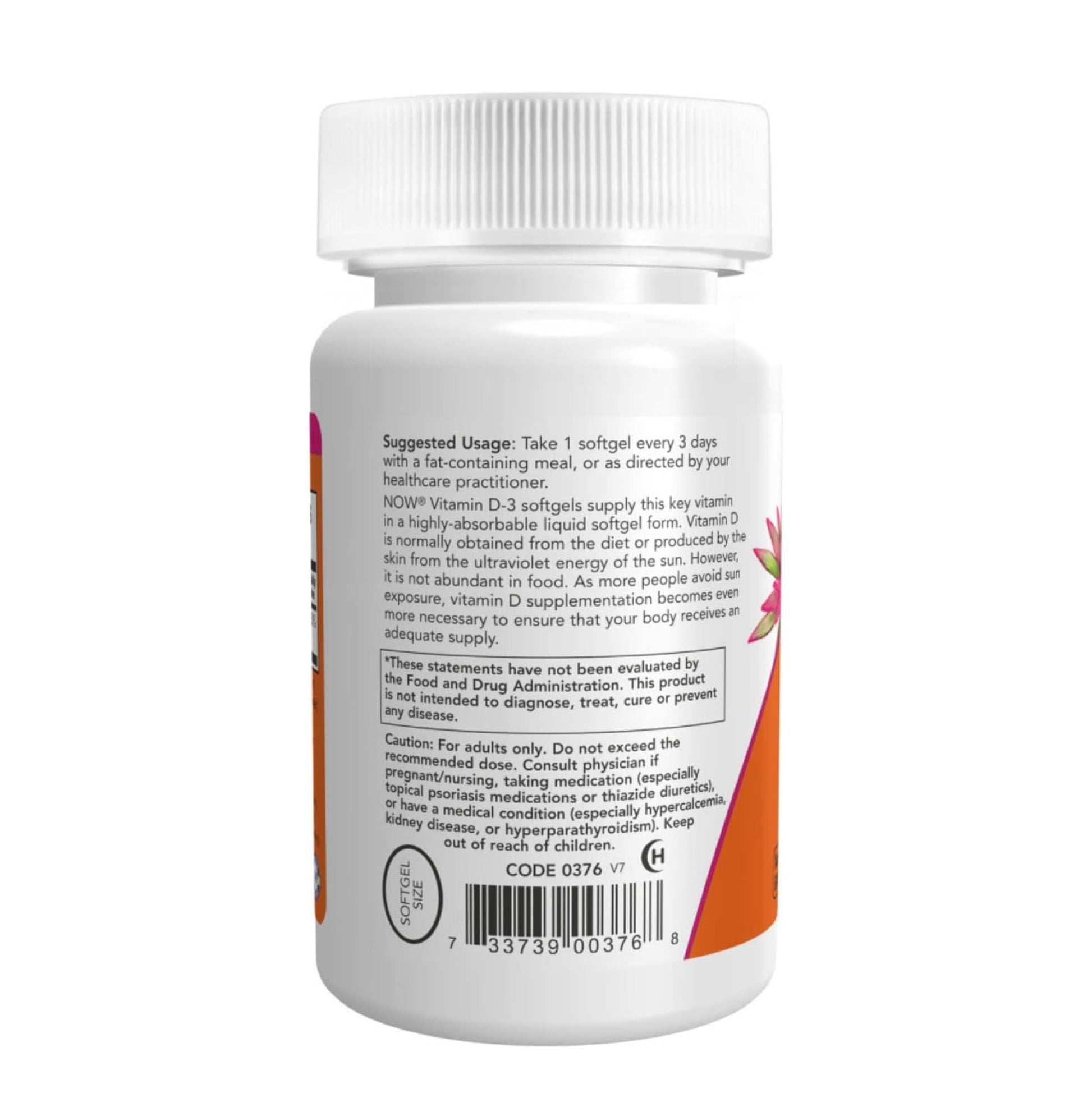 NOW® Vitamin D-3 softgels supply this key vitamin in a highly-absorbable liquid softgel form. Vitamin D is normally obtained from the diet or produced by the skin from the ultraviolet energy of the sun. However, it is not abundant in food. As more people avoid sun exposure, vitamin D supplementation becomes even more necessary to ensure that your body receives an adequate supply.