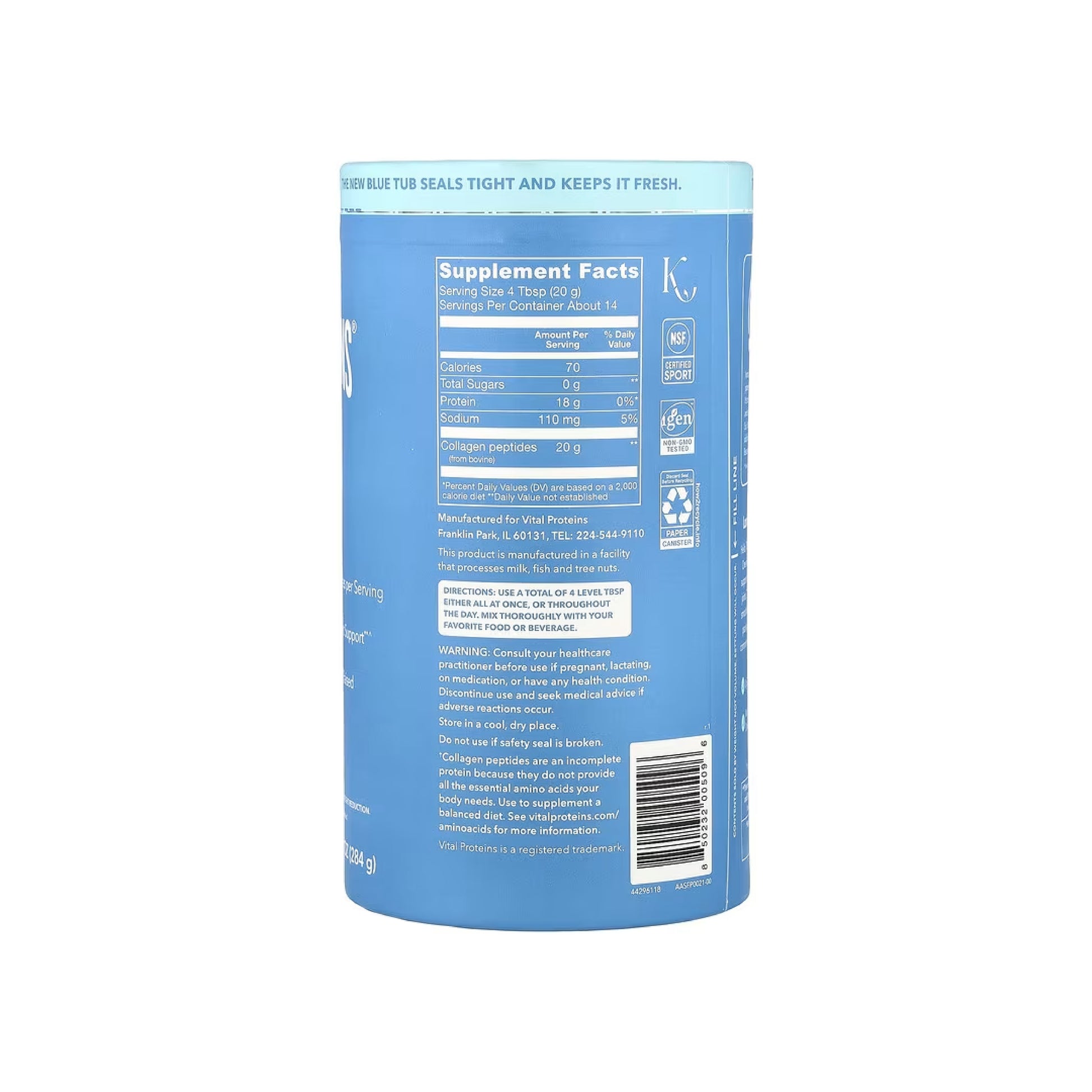 Collagen Peptides - Unflavored 20oz ships in our NEW paperboard canisters. It’s the same collagen you love, now with 90% less plastic.ᵠ Collagen Peptides - Unflavored 10oz ships in plastic canisters. Ultimately all Vital Proteins collagen peptide powder varieties will transition from plastic packaging to paper-based canisters. Click here for more information.